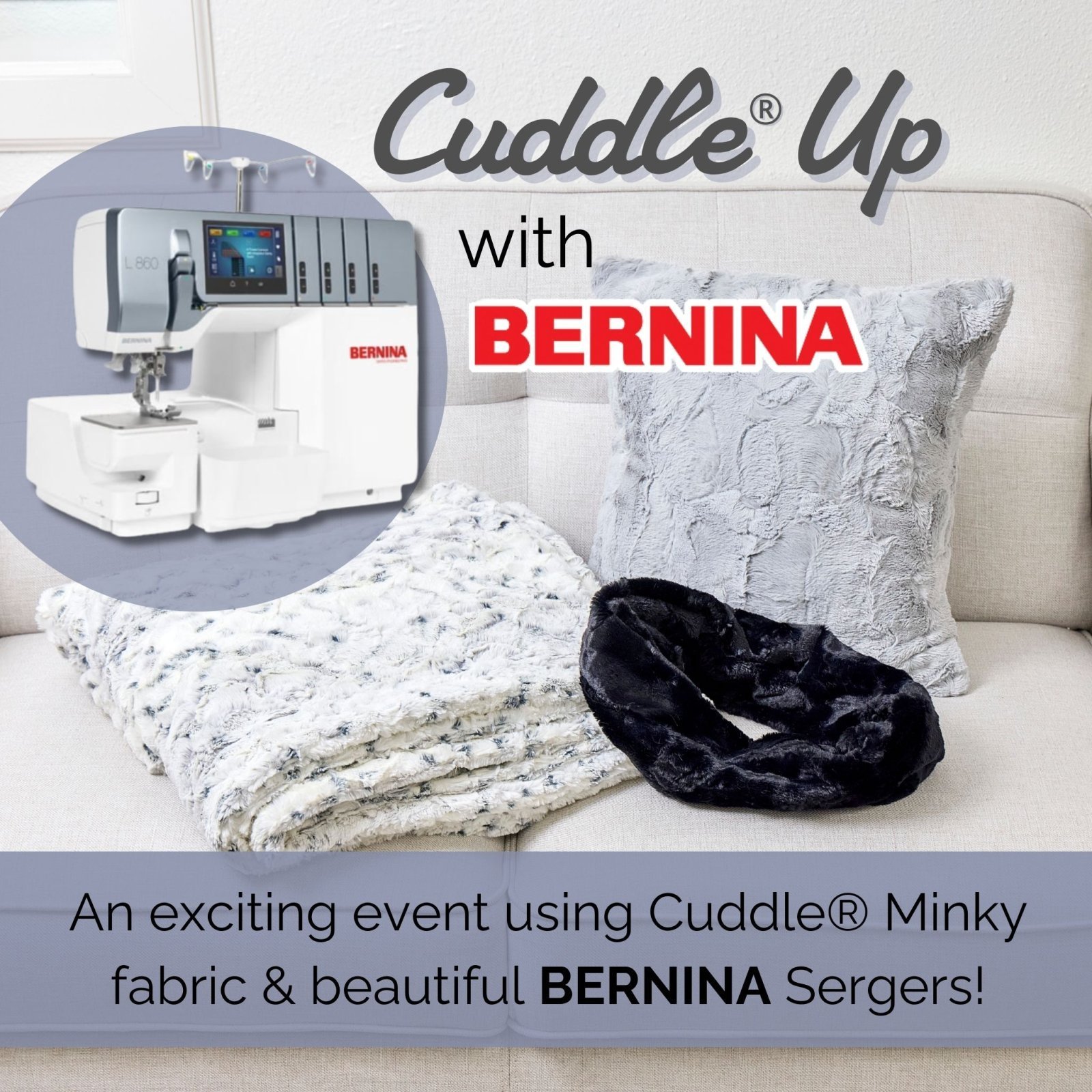 Ready to Cuddle Up? Discover techniques for perfectly finished projects that will chase away the chill of Winter. A Shannon educator will guide you every step of the way, whether you've never used a serger before or if you're already a pro. You'll pick up fresh tips and tricks for serging and using Cuddle fabric. This Event will also include a trunk show of fun projects to make with a serger.